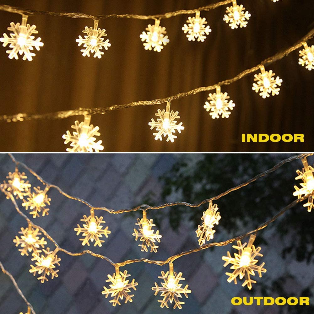 Two working modes: Twinkle/Flash, Steady on. The little snowflake lights are bright white and starry, it will brighten up the dark corner for happiness atmosphere inside or outside